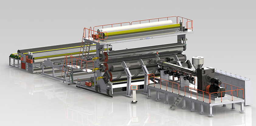 EVA/POE光伏封裝膠膜生產線 光伏聚氨酯邊框生產線 單向/雙向拉伸生產線 流涎膜生產線 片材擠出生產線 防水卷材、地板革設備生產線 板材擠出生產線 發泡板片材生產線 涂布復合生產線